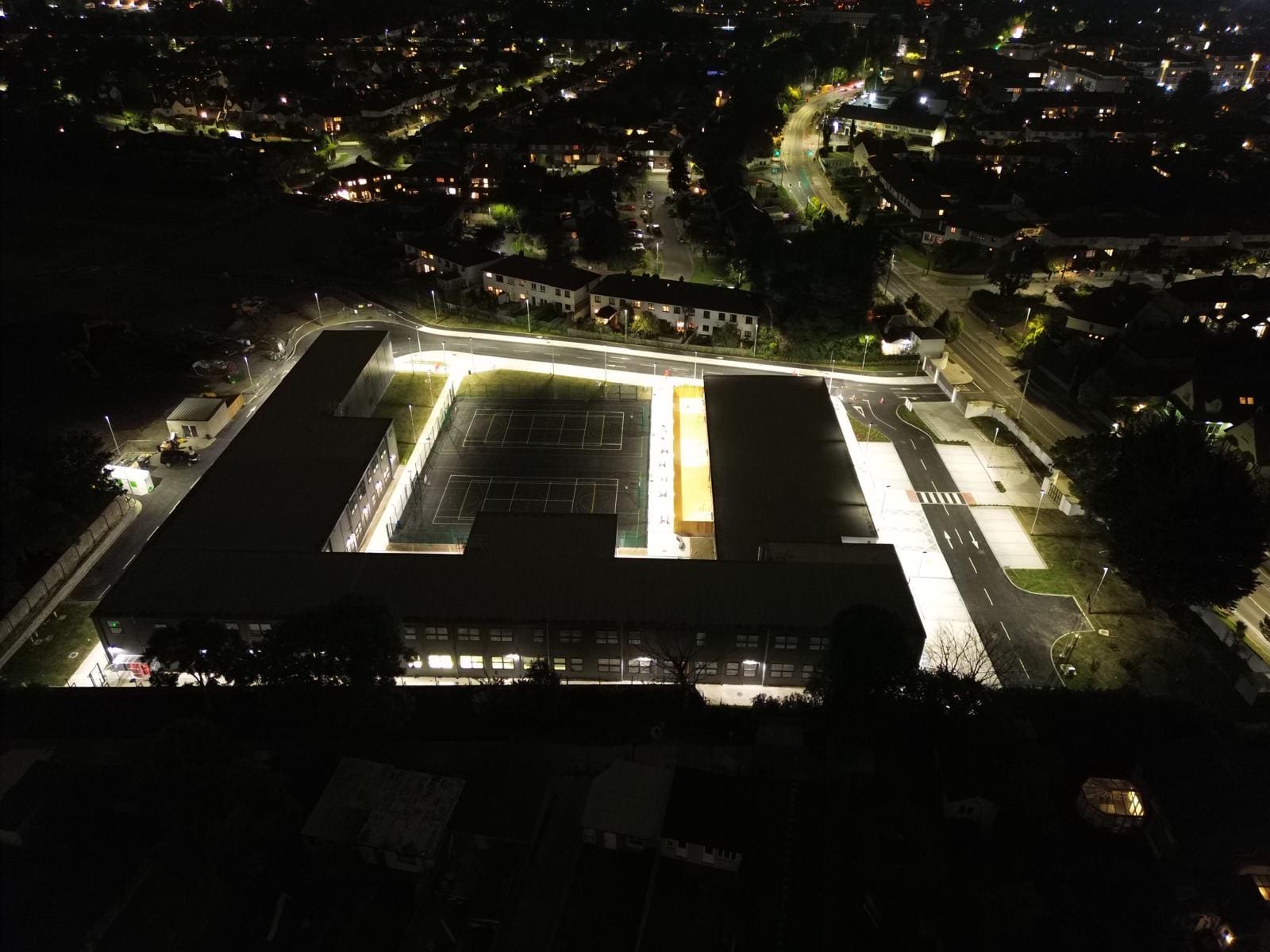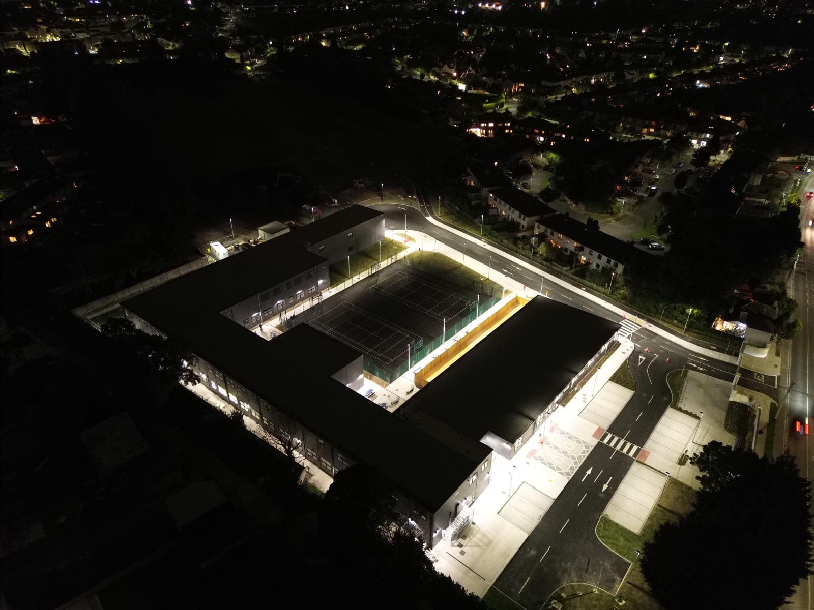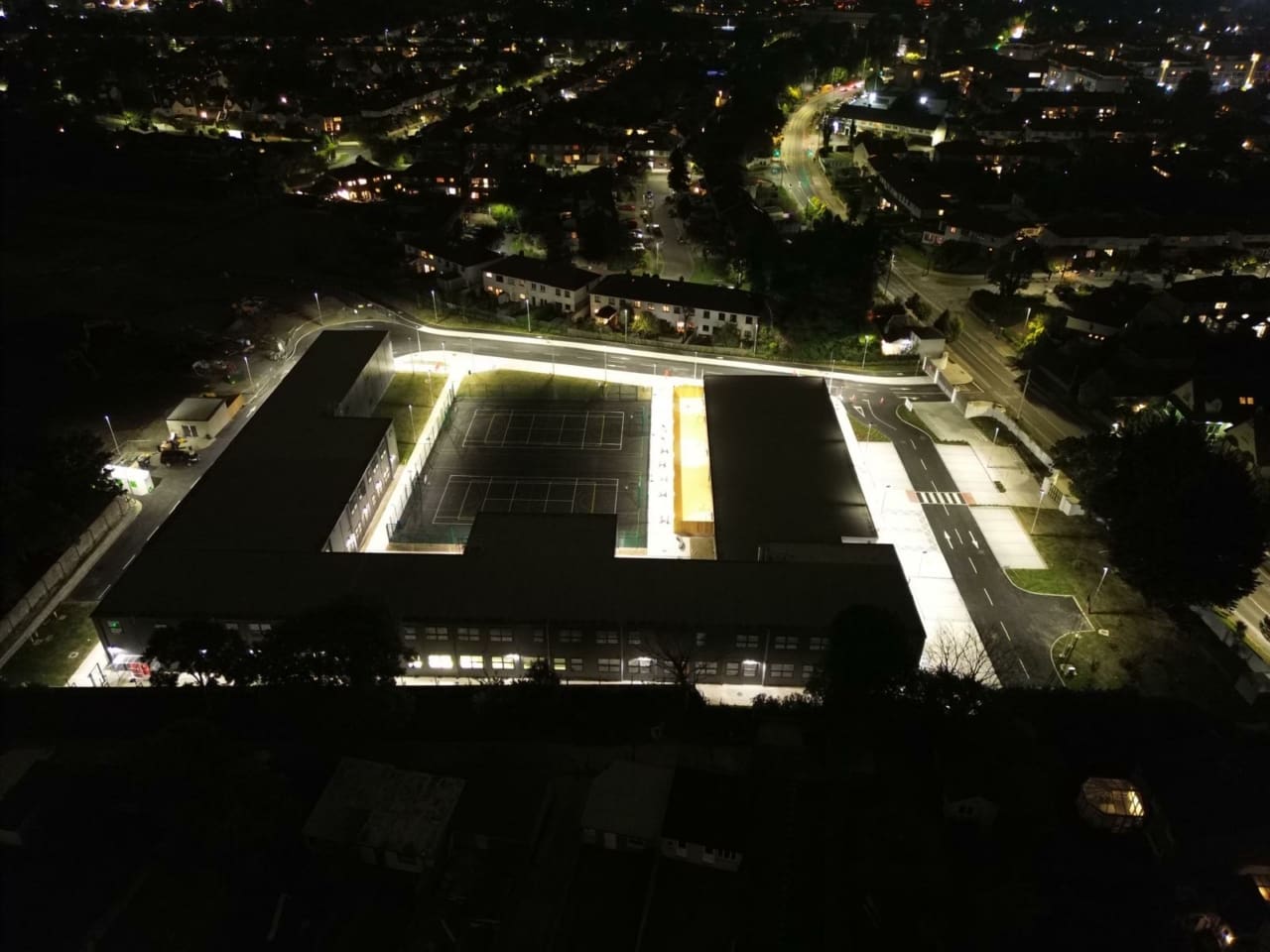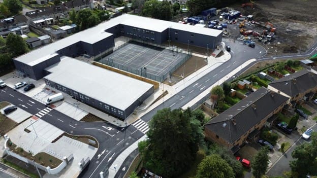 The project, delivered in just 9 months, consisted of a large modular school with teaching spaces, specialist rooms, SEN facilities, staff areas, full services, and extensive site works including roads, parking, courts, landscaping, utilities, and infrastructure.